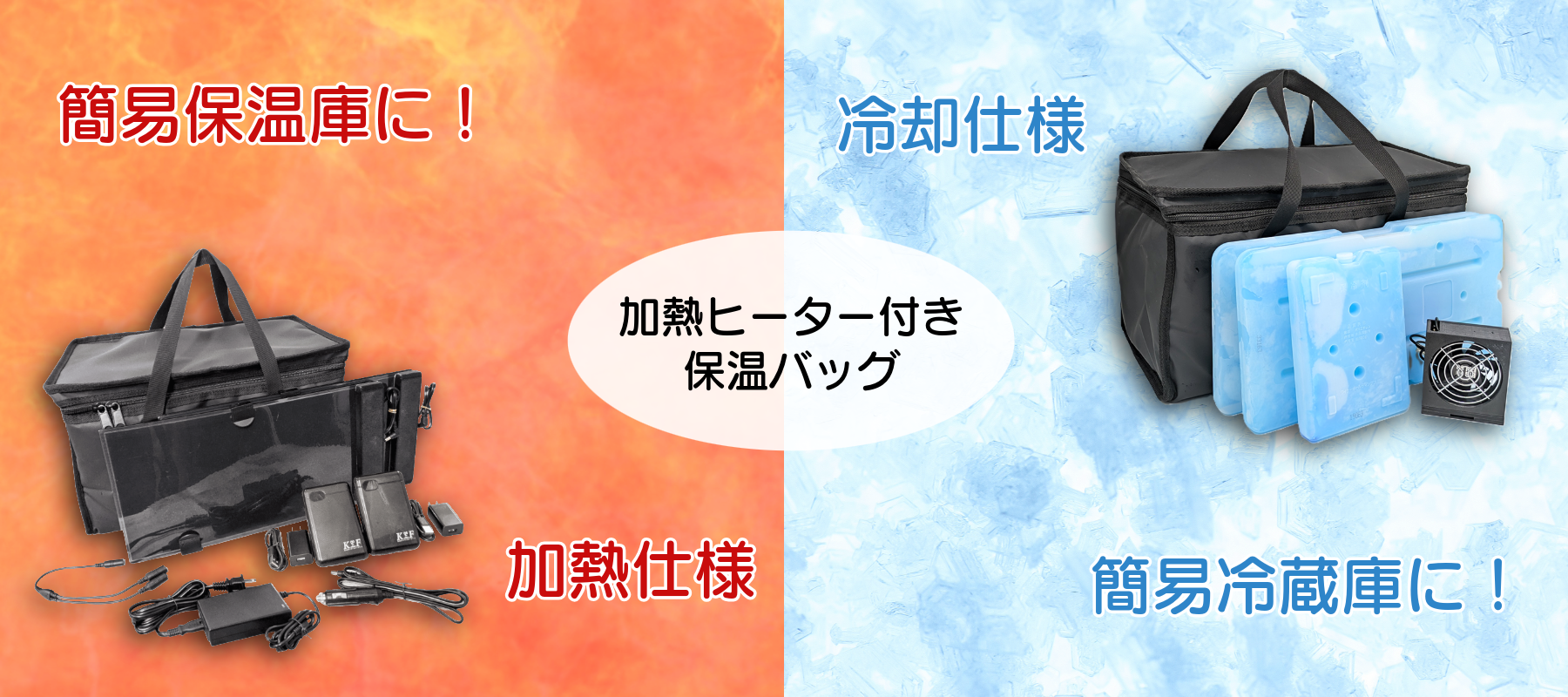 加熱ヒーター付き保温バッグ L型 【バッテリープラスセット】