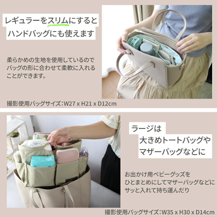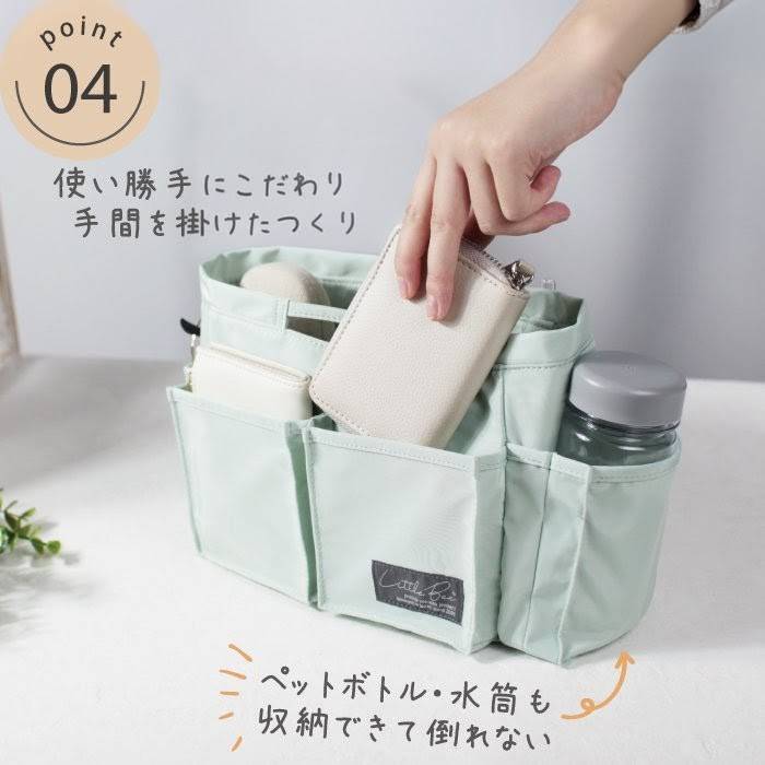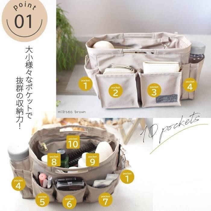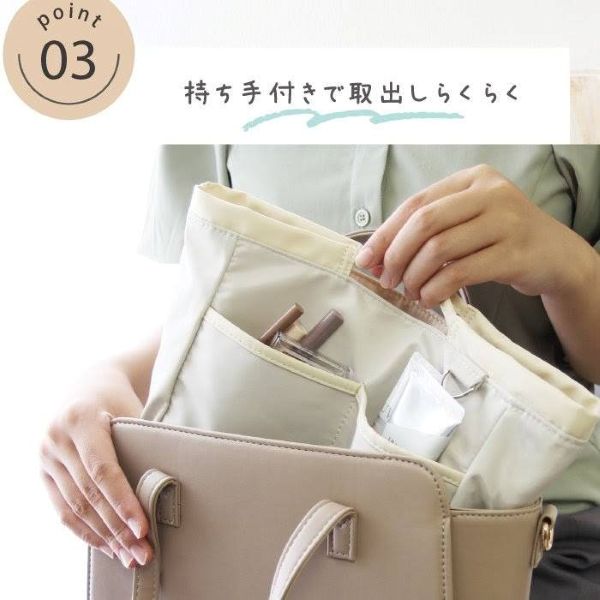 持ち手が付いているので、バッグを変えてもバッグインバッグごとに中身をサッと簡単移動!